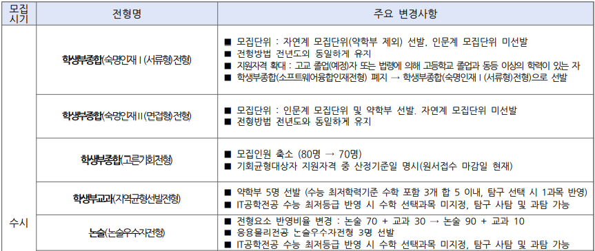 학생부종합(소프트웨어융합인재전형) 폐지 -> 학생부종합(숙명인재I 서류형전형)으로 선발